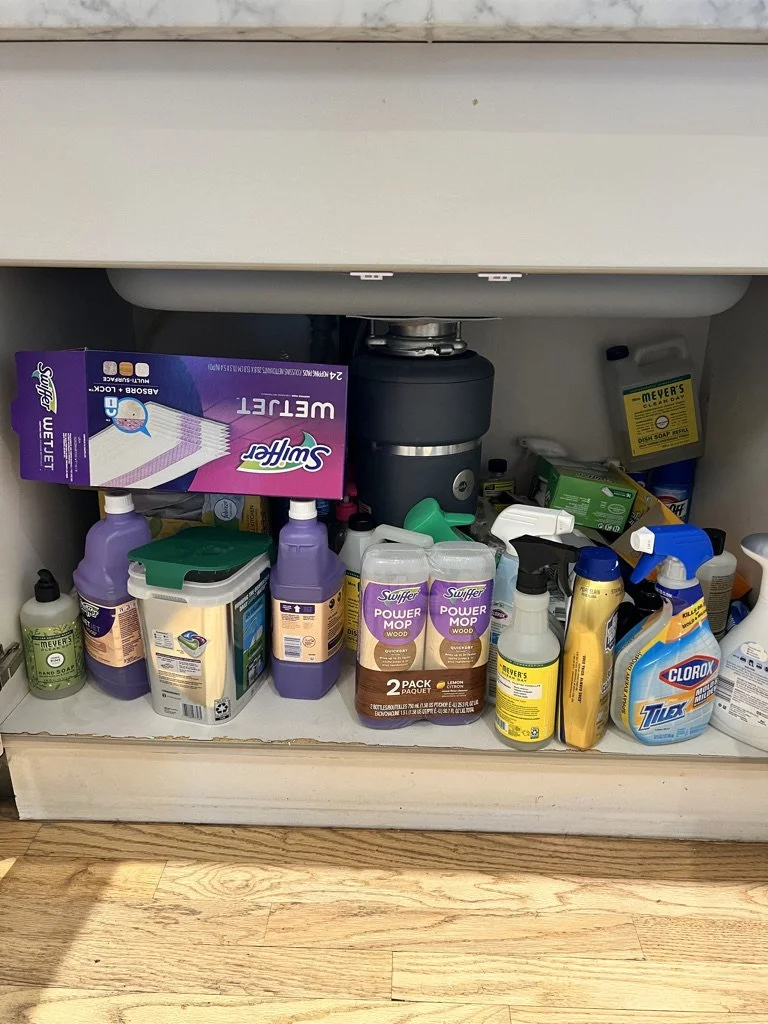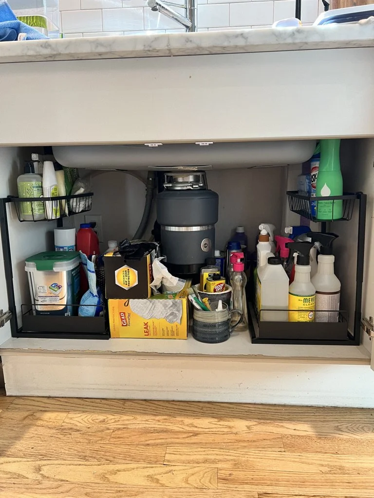 And in the final before and after I cleaned and organized under the sink. Another drawer and shelf implementation to make sure anything from the back can be accessed without having to move anything around to get there.